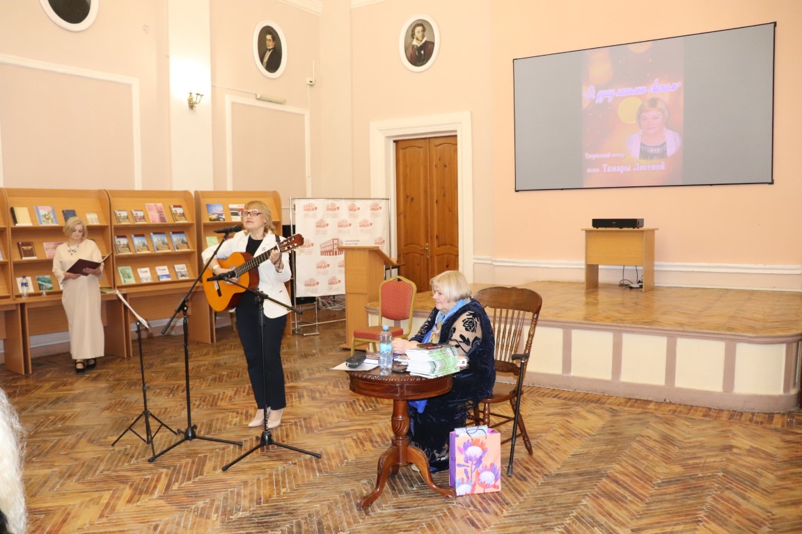 Творческий вечер «Я душу наполню светом» собрал в зале Александра Твардовского областной библиотеки почитателей поэзии Тамары Лосевой. По словам самой виновницы торжества, «это мероприятие необычное и даже в какой-то степени экспериментальное», поскольку впервые на нём стихи поэта прозвучали не в авторском исполнении – их читали её дочери.