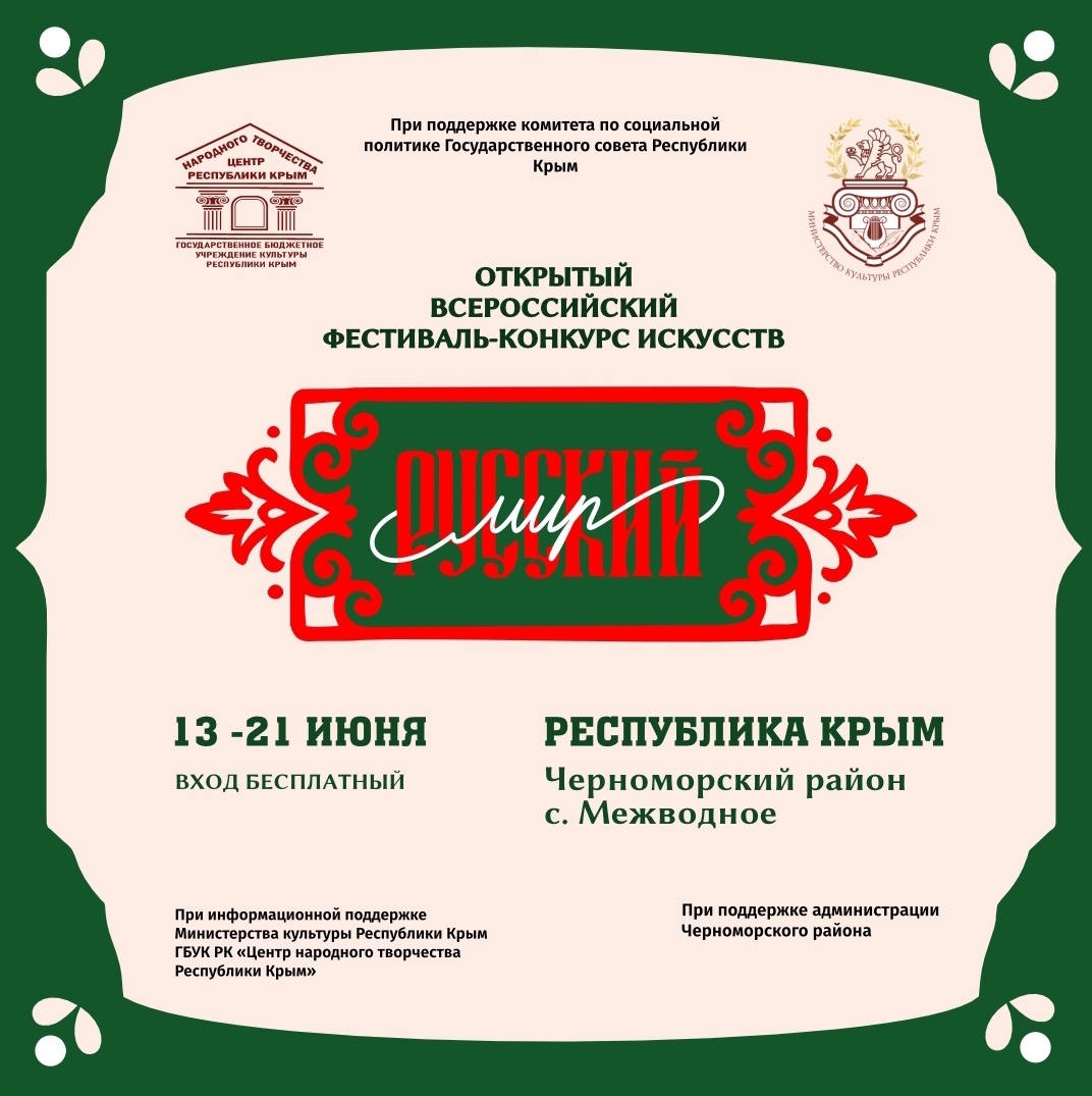 Открыт прием заявок на Всероссийский фестиваль-конкурс искусств «РУССКИЙ МИР»!