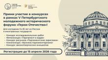 Ежегодно, начиная с 2022 года, в Северной столице проходит Петербургский молодежный исторический форум «Герои Отечества», который объединяет школьников, студентов, преподавателей и экспертов, увлеченных изучением истории России.