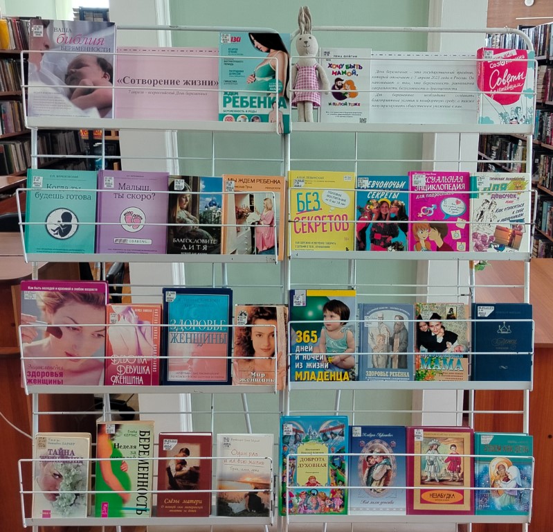 На книжной выставке отдела абонемента «Сотворение жизни», посвященной Дню беременных, представлены книги для будущих мам о том, как подготовиться к появлению малыша, литература о традиционных семейных ценностях общества, о святости материнства. Книги подскажут, как сделать здоровыми и счастливыми и маму, и малыша!