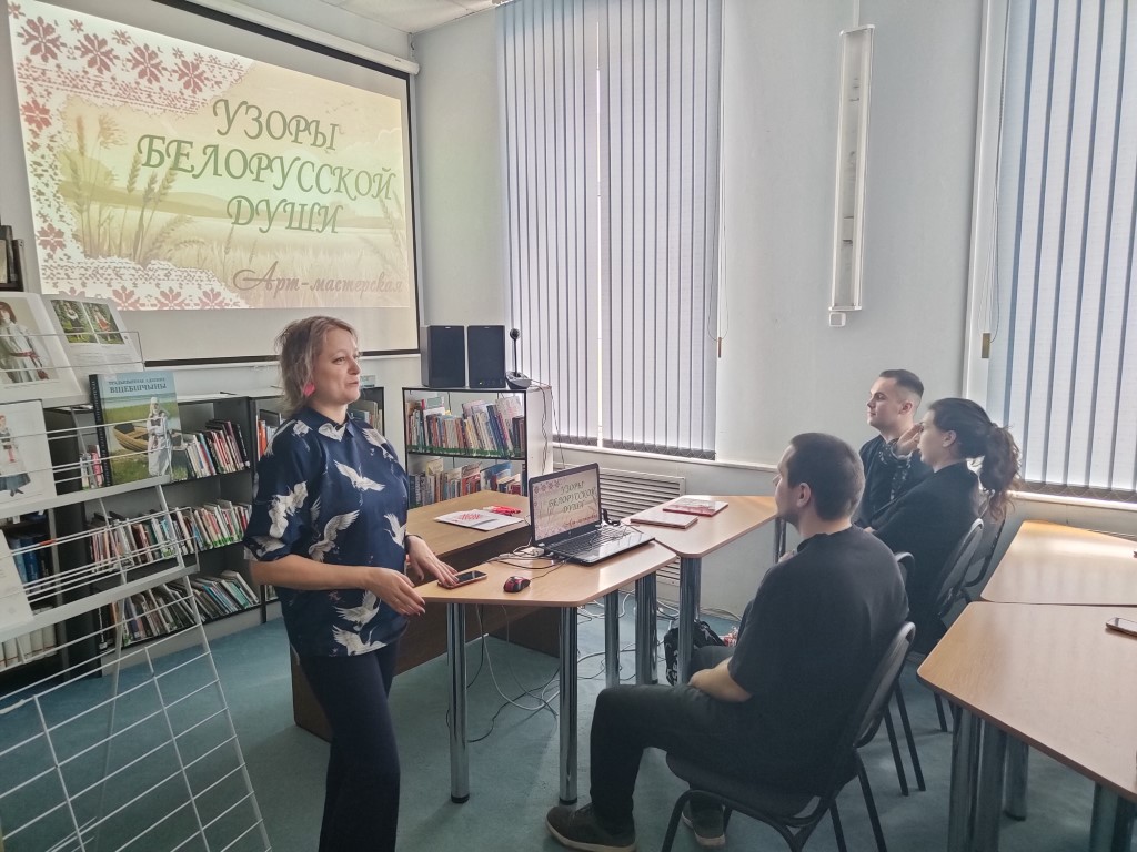 В завершение мероприятия Янина Исакова, заведующая Центром межкультурных коммуникаций нашей библиотеки, провела арт-мастерскую «Узоры белорусской души» и познакомила ребят с языком орнамента, который можно рассматривать как шифр и отпечаток души народа.