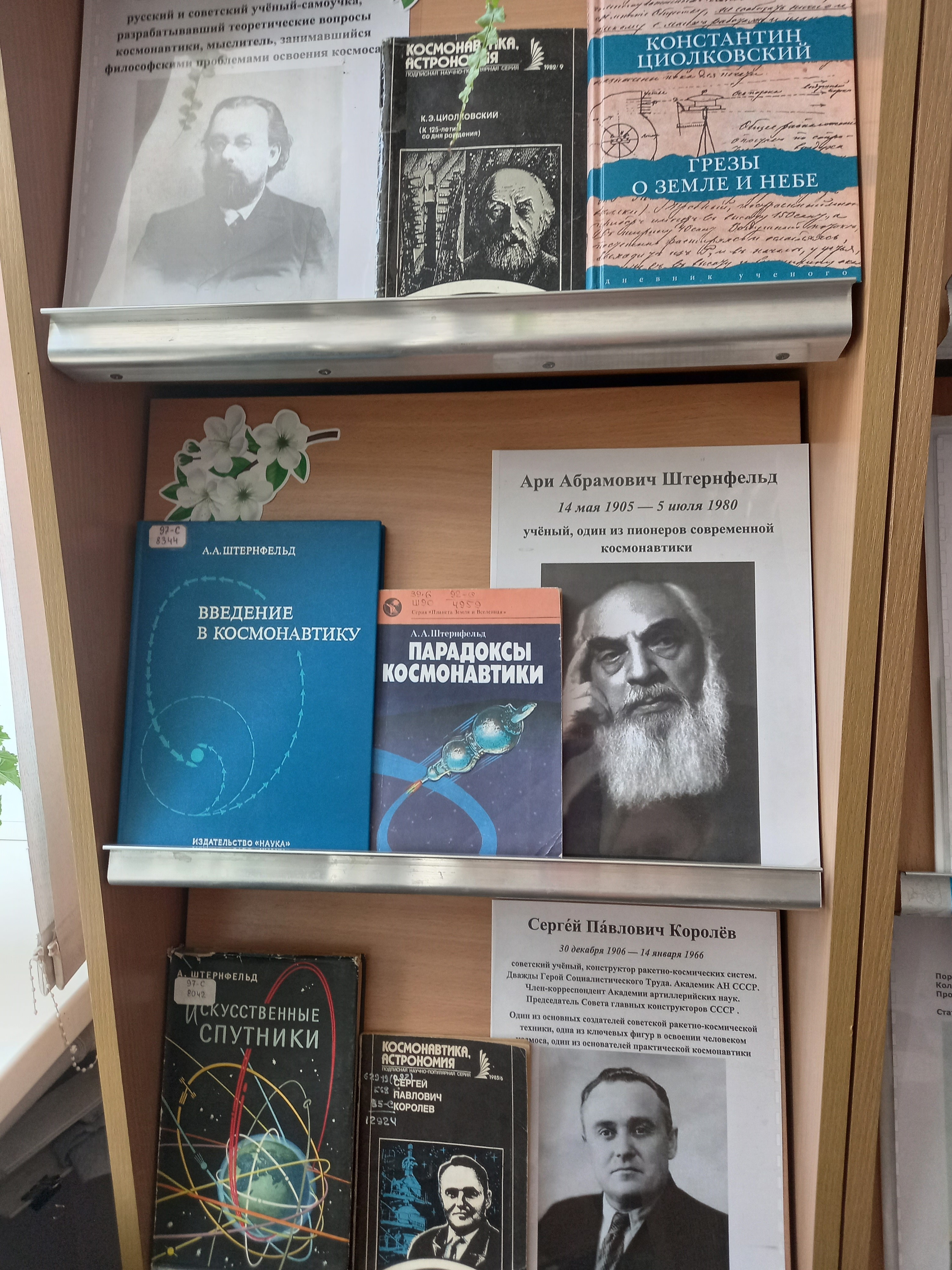 В отделе социально значимой информации (3 этаж) открыта выставка-просмотр, на которой представлены книги о теоретиках и практиках космической эры — Константине Циолковском, Ари Штернфельде, Сергее Королёве; уникальные издания из личной коллекции академика Бориса Петрова; красочные альбомы о современном освоении космоса.