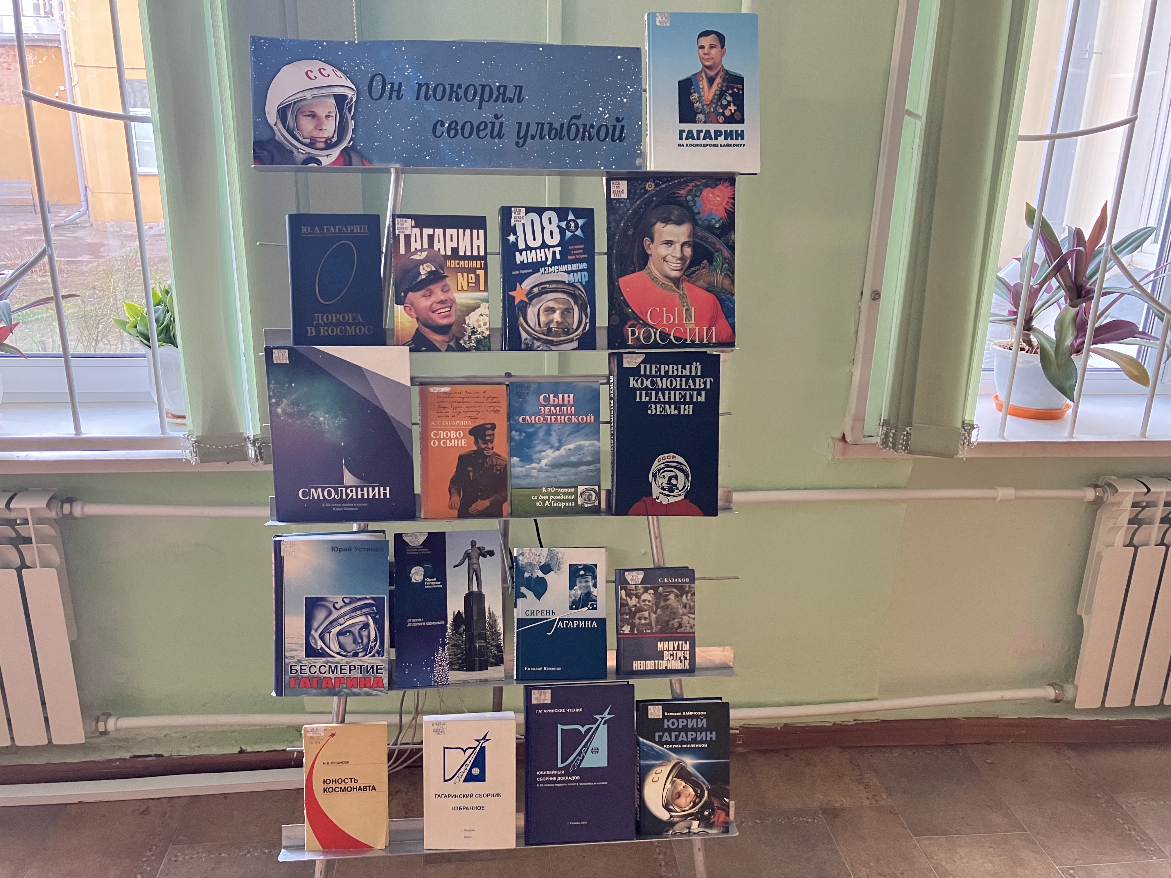 В Центре краеведения (2 этаж) работает выставка о первопроходце космоса, нашем земляке Юрии Гагарине «Он покорял своей улыбкой», а в холле 3 этажа – фотовыставка «Юрий Гагарин – звездный сын земли Смоленской».