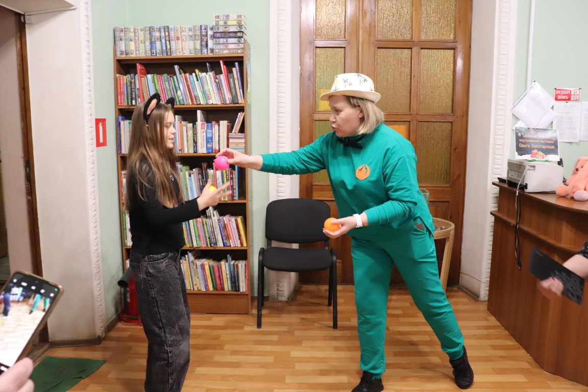 Во время Библионочи в отделе абонемента проходила интерактивная игра «Дом дружбы» по детской сказочной повести Эдуарда Успенского «Крокодил Гена и его друзья». Все вместе герои сказки построили себе дом. И даже вредная старуха Шапокляк перестала вредничать, а стала хорошей и влилась в дружный коллектив!