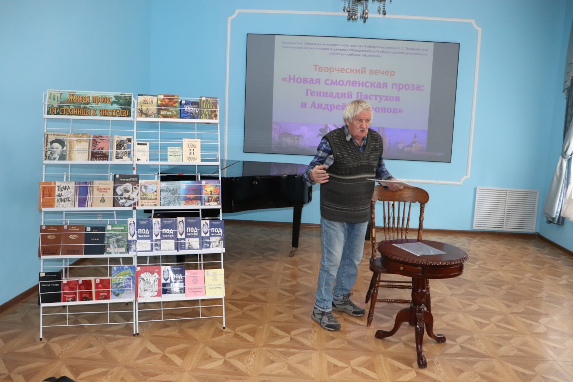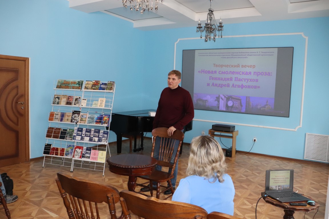 В последних числах апреля в областной библиотеке имени А. Т. Твардовского состоялся творческий вечер «Новая смоленская проза», посвященный творчеству двух авторов – Геннадия Пастухова и Андрея Агафонова.