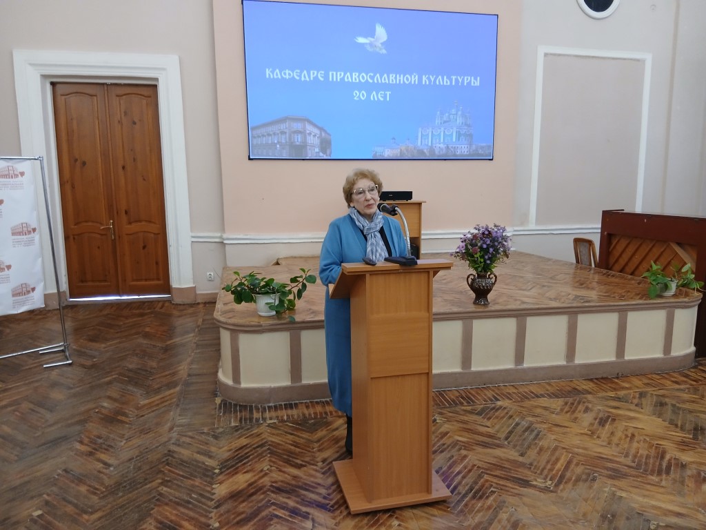 О ведущейся на кафедре православной культуры работе и ее перспективах рассказала директор Смоленской областной универсальной научной библиотеки им. А.Т. Твардовского, заслуженный работник культуры РФ Ольга Мальцева.