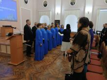 Перед началом торжественного мероприятия выступил Хор Свято-Успенского кафедрального собора. Высокое собрание приветствовал Александр Федотов, специалист-эксперт Департамента по взаимодействию с общественными объединениями Министерства Смоленской области по внутренней политике.