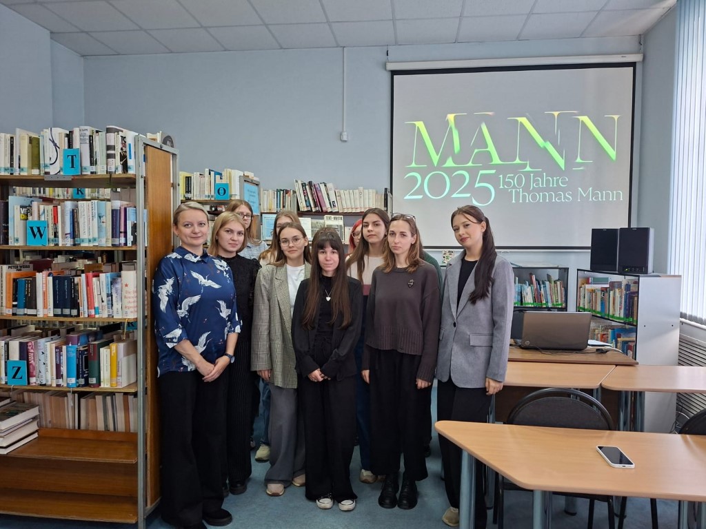 В библиотеке имени Твардовского прошел цикл мероприятий, приуроченных к 150-летию со дня рождения Томаса Манна. Студенты немецкого отделения филологического факультета СмолГУ прослушали интерактивную лекцию, посвященную жизни и творчеству немецкого писателя.