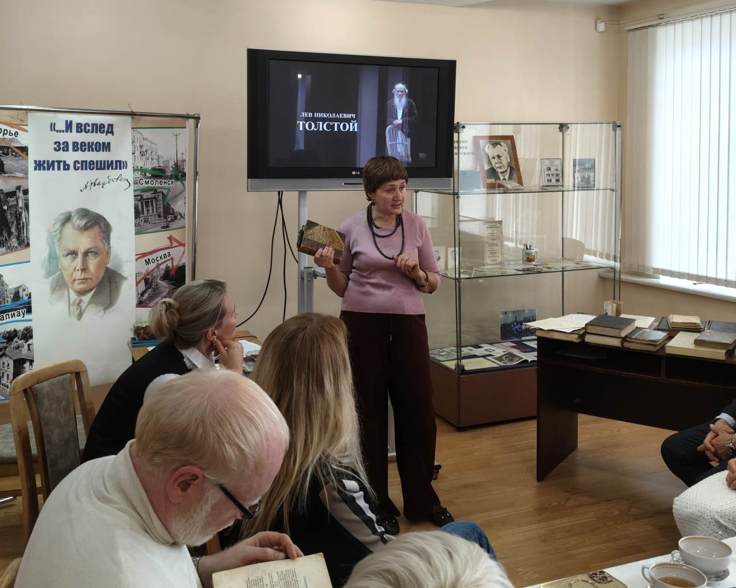 Сотрудники отдела редких книг представили обзор раритетных изданий Толстого, вызвавший живой интерес у аудитории. Были продемонстрированы прижизненные и ранее запрещенные цензурой издания, отдельные тома из разных собраний сочинений.