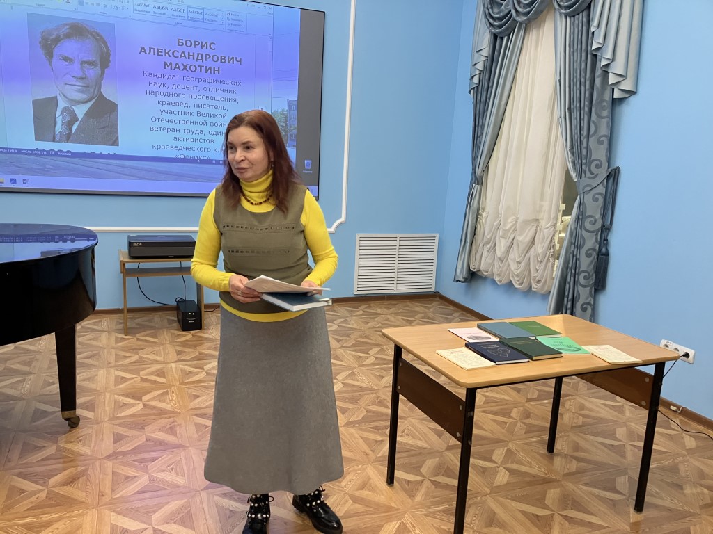 Очень интересное сообщение о жизни и деятельности кандидата географических наук, доцента, отличника народного просвещения, писателя, участника Великой Отечественной войны, ветерана труда, члена городского клуба краеведов «Феникс» Б. А. Махотина сделала краевед Татьяна Эдуардовна Самусёва.
