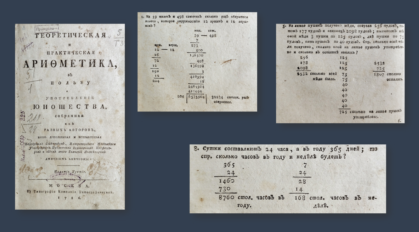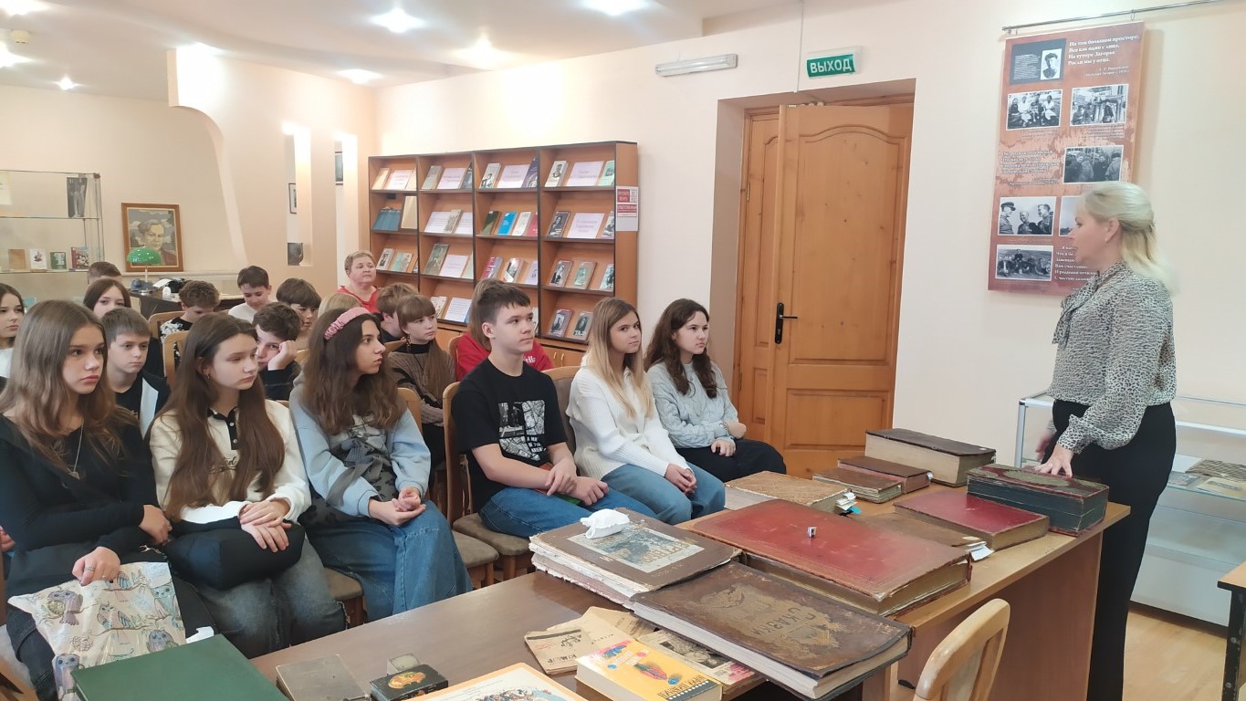 Ребята познакомились с редкими отечественными изданиями XVIII–XIX вв., узнали, что книги тоже могут быть памятниками, услышали о технологии изготовления тряпичной бумаги. Им были продемонстрированы следующие издания: «Трагедии» Расина (Париж, 1801 г.) ранее принадлежавшие императрице Александре Фёдоровне и великому князю Михаилу Николаевичу; «Образование древних народов. Ч. 4» Д. Бардона (Санкт-Петербург, 1796 г.), которая была переведена по заказу Екатерины II, «Словарь Академии Российской» (Санкт-Петербург, 1792 г.), "Теоретическая и практическая арифметика, в пользу и употребление юношества… Д. С. Аничкова" (Москва, 1786 г.) и др.