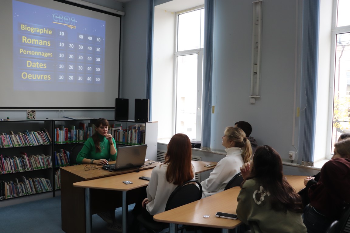 29 и 30 октября в нашей библиотеке состоялся первый цикл мероприятий о жизни и творчестве французского писателя Нобелевского лауреата Франсуа Мориака. Студенты первого, второго и четвёртого курсов филологического факультета СмолГУ послушали рассказ о пути становлении писателя и его религиозных чаяниях, посмотрели отрывки из экранизаций романов и документальных фильмов. В завершении литературного ликбеза будущим филологам предстояло пройти задания «Своей игры» и викторины-противостояния персонажей «Louis VS Thérèse».