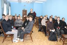 Затем студенты приняли участие в познавательной игре «История военного образования в России». В ходе мероприятия участники ответили на ряд вопросов по истории военного образования в России, а также на вопросы из области физики, математики, литературы, музыки и др. По итогам игры команда-победителей получила памятный диплом.
