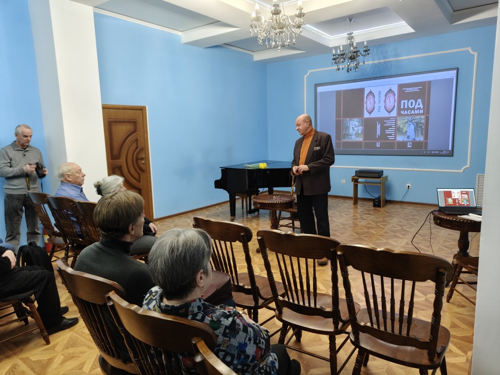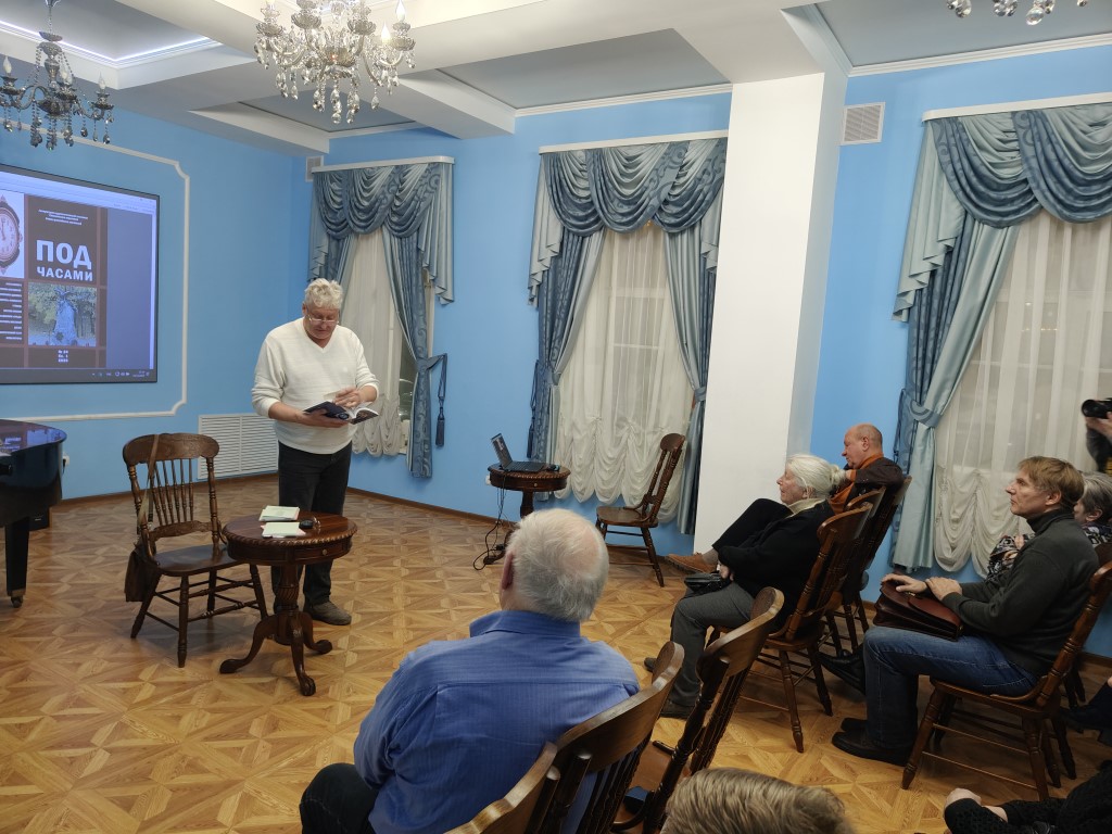 Открыл презентацию В. В. Макаренков – Член Союза российских писателей, председатель Смоленского отделения Союза российских писателей, редактор–составитель альманаха «Под часами», член Союза журналистов России. Он рассказал о структуре альманаха, об авторах, которые в нем публикуются, а также поведал присутствующим о планах на будущее.