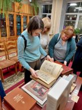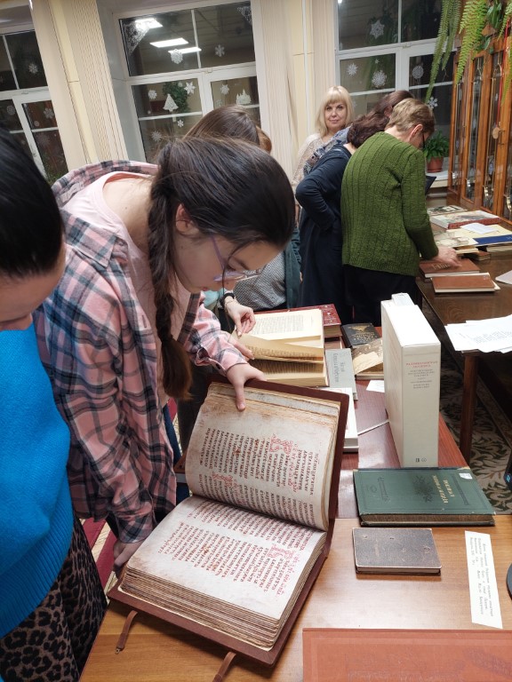Во время Библионочи посетители редкого фонда смогли окунуться в мир уникальных изданий. Им были представлены факсимильные копии таких шедевров, как «Радзивиловская летопись» и «Слово о полку Игореве». Особый интерес вызвали произведения Пушкина, среди которых было миниатюрное издание «Евгения Онегина» в кожаном переплете и золотым обрезом, поэма «Медный всадник» с иллюстрациями Александра Бенуа, а также книги для детей – «Азбука Бенуа», созданная для сына автора с живописными картинами, красочные сказки издательства И. Н. Кнебель и мн. др.
