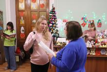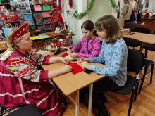 В фотозоне участники с энтузиазмом примерили на себя «богатырские доспехи»: щит, шлем, кольчугу и плащ; узнали о вооружении русского воина (палица, копье, щит, меч, стрелы, булава, лук); прикрепили к «богатырскому дубу» листочки с новогодними пожеланиями; с увлечением изготовили поделки на мастер-классах: богатырского коня из ткани и в технике декупаж, щит и листок дуба в технике обрывной аппликации.