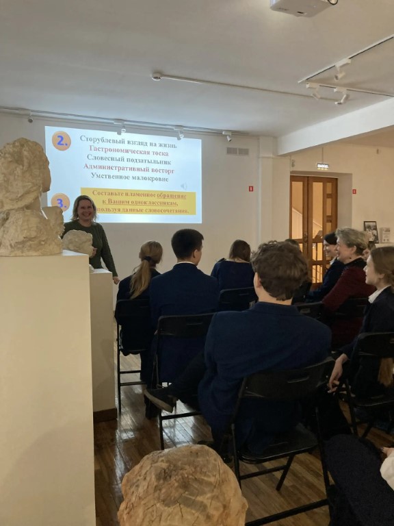 «Ваш суровый друг М. Е. Салтыков-Щедрин» - литературный блокнот под таким названием был представлен сегодня участникам мероприятия, посвященного юбилею сатирика, которое состоялось в Музее скульптуры Сергея Тимофеевича Конёнкова. Слушатели открыли для себя Салтыкова-Щедрина как словотворца и выступили его соавторами, составляя фразы с использованием «щедринизмов». Составителями этого блокнота выступили сотрудники областной библиотеки имени А. Т. Твардовского.