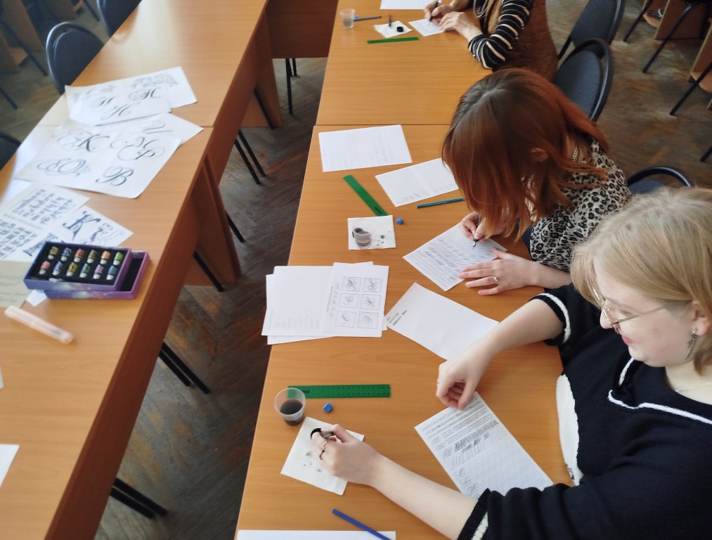 Сотрудники нашей библиотеки провели мастер-класс по каллиграфии для первокурсников Смоленского государственного института искусств.