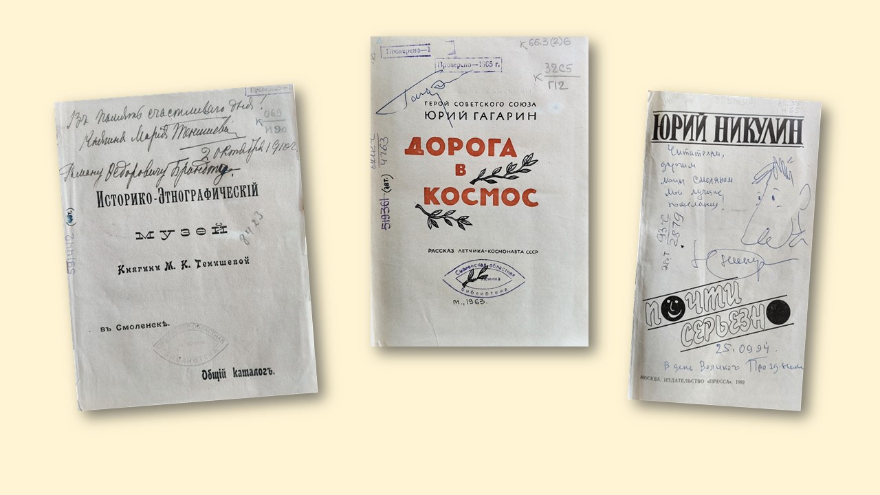Особый трепет вызвали книги с автографами наших знаменитых земляков! Представьте себе: держать в руках издание, подписанное самой княгиней М. К. Тенишевой! Или прикоснуться к автографу первого космонавта планеты Ю. А. Гагарина! А улыбки на лицах студентов появились, когда они увидели книгу с подписью легендарного Ю. В. Никулина. Это не просто книги, это живая связь с великими людьми, оставившими свой след в истории.