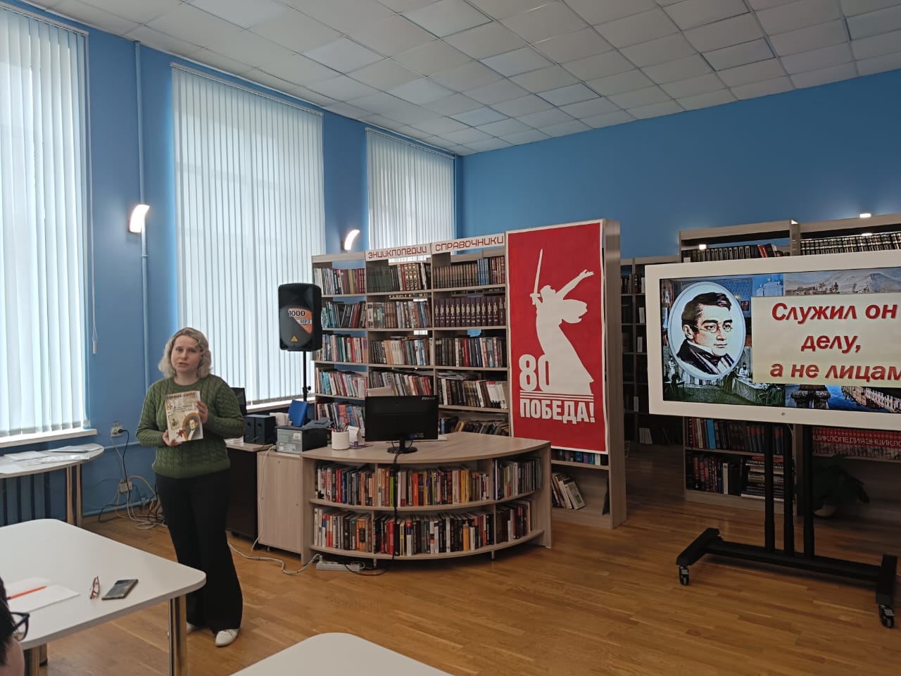 Сотрудники нашей библиотеки провели для учеников Лицея № 1 имени академика Бориса Петрова и школы №28 вечер-портрет, посвященный 110-летию со дня рождения поэта, прозаика, публициста и драматурга Константина Симонова.