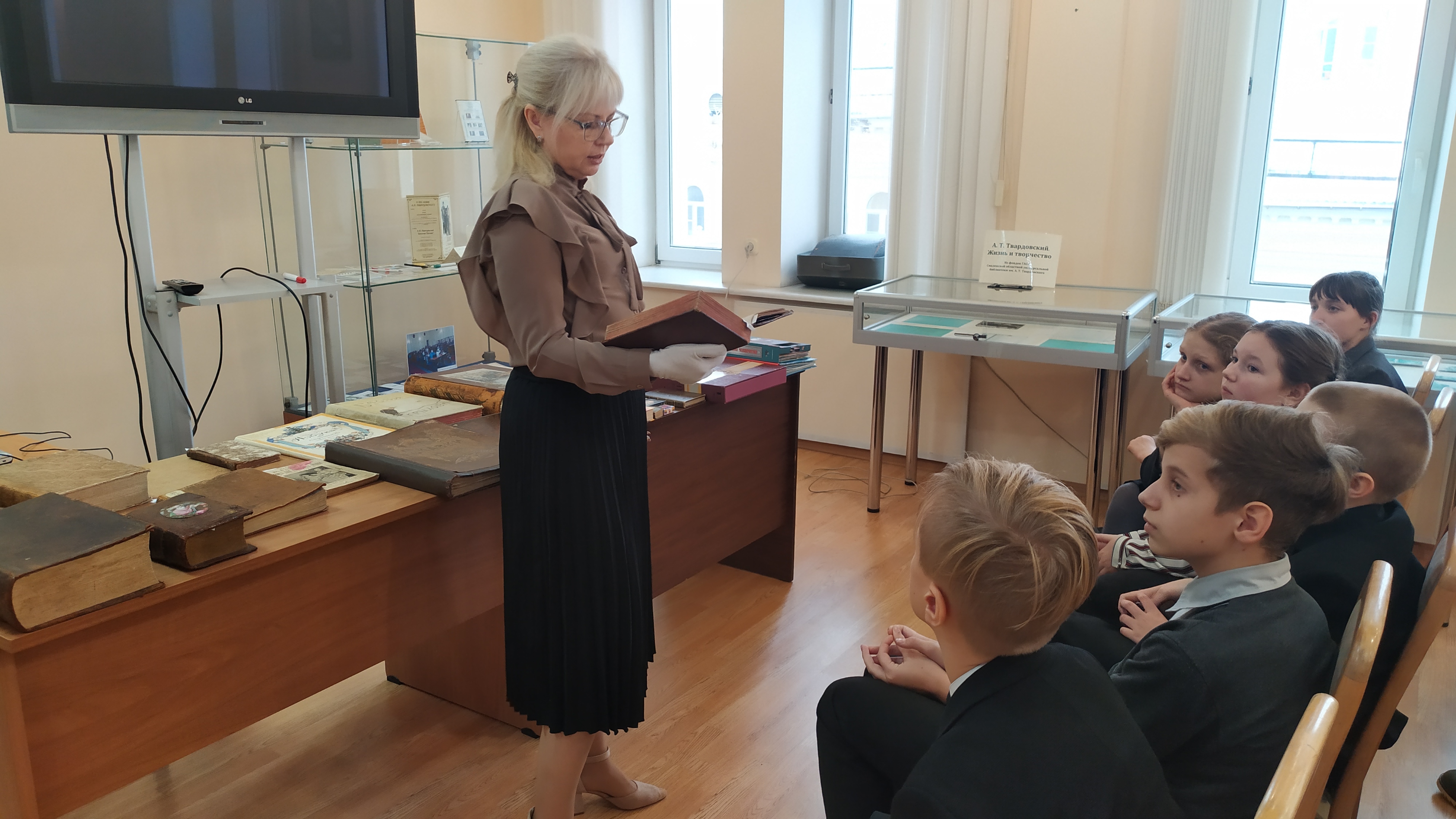 Ребята познакомились с редкими отечественными и западноевропейскими изданиями XVIII–XIX вв., книгами с автографами и дарственными надписями, миниатюрными изданиями. Им были представлены: Иоанн Златоуст «Беседы на евангелиста Матфея» (1781 г.), М. Ф. Дандре-Бардон «Образование древних народов» (1796 г.), «Альбом русских сказок и былин» (1875 г.), созданный по заказу царской семьи. Гимназисты познакомились с учебниками по арифметике, изданными в 1786 и 1836 гг. Прочитали условия задач и с легкостью решили их. Увидели первую в России популярную энциклопедию по естественным наукам для детей и юношества – «Зрелище природы и художеств» 1787 г.