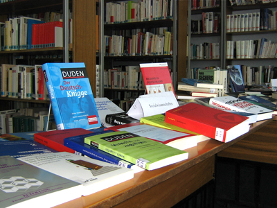 Неизменный интерес вызывает у посетителей немецко-французского читального зала ежегодная выставка новых поступлений литературы на немецком языке. Новые энциклопедии, книги по истории, лингвистике, словари сразу же заинтересовали посетителе. Студенты, пишущие курсовые и дипломные работы смогли получить новую научную информацию на интересующую их тему. Так как при заказе новых фондов учитываются и пожелания постоянных читателей, многие из них смогли получить долгожданные издания необходимые для обучения или профессиональной деятельности.