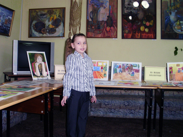 В рамках празднования 180-летнего юбилея библиотеки, 28.11.2011 г. состоялась презентация выставки детского рисунка «Библиотека глазами детей». Идея создать именно такую выставку возникла не случайно. Ведь именно сегодняшние дети-это наши потенциальные читатели в будущем. В проекте приняли участие воспитанники детского клуба «Юность» МПЦ «Смоленские дворы» под руководством Костенко Людмилы Ивановны. Свои работы также представила дочка сотрудницы библиотеки – Кан Вероника. Детям были заданы две темы: 1. Из жизни библиотеки; 2. По страницам любимых книг. Ребята отлично справились с поставленной задачей. Они не только нарисовали библиотекаря за работой, книжные стеллажи, иллюстрации к литературным произведениям, но сумели выразить свое понимание работы библиотекаря и место библиотеки в нашей жизни.
