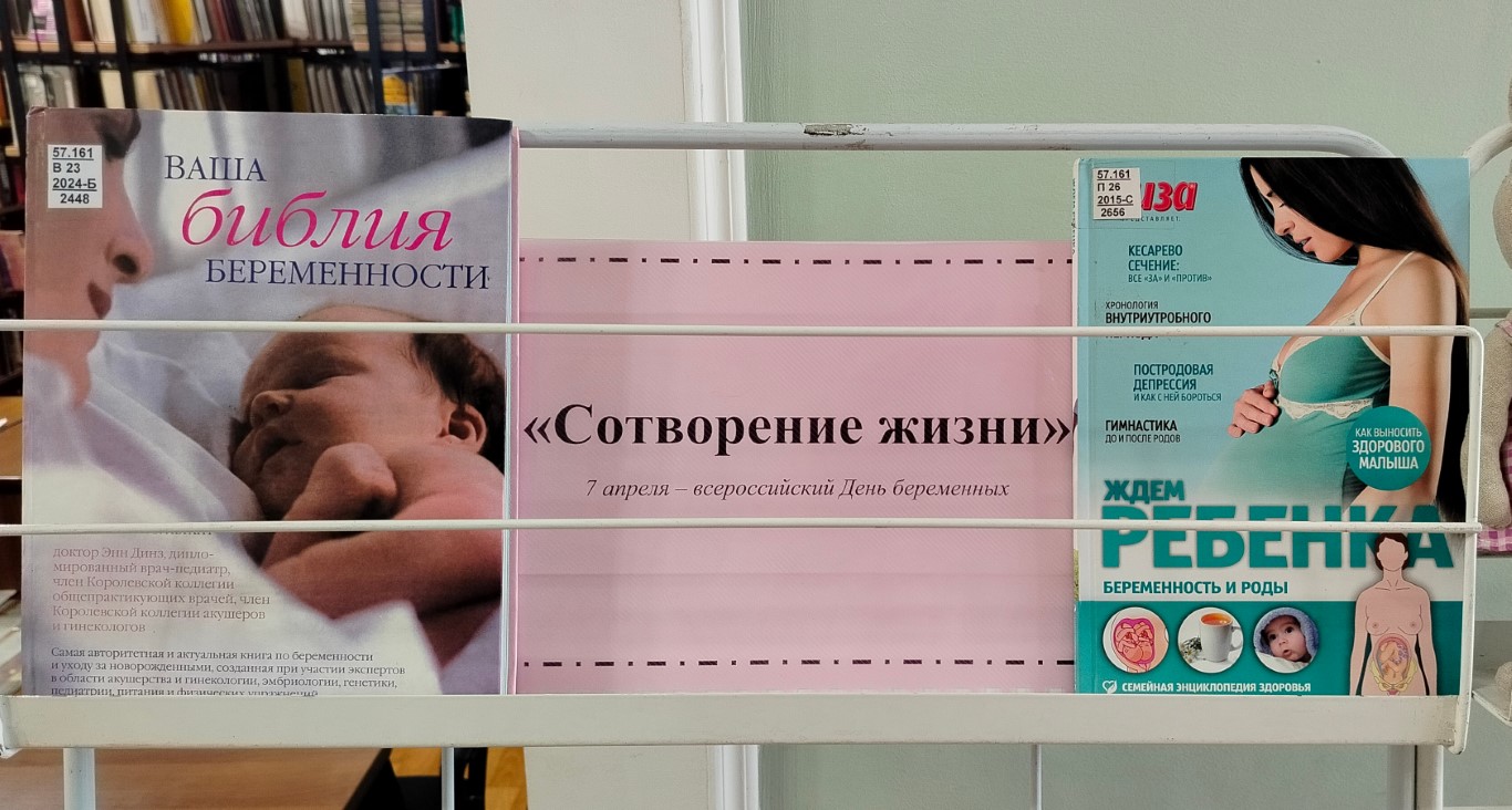 На книжной выставке отдела абонемента «Сотворение жизни», посвященной Дню беременных, представлены книги для будущих мам о том, как подготовиться к появлению малыша, литература о традиционных семейных ценностях общества, о святости материнства. Книги подскажут, как сделать здоровыми и счастливыми и маму, и малыша!