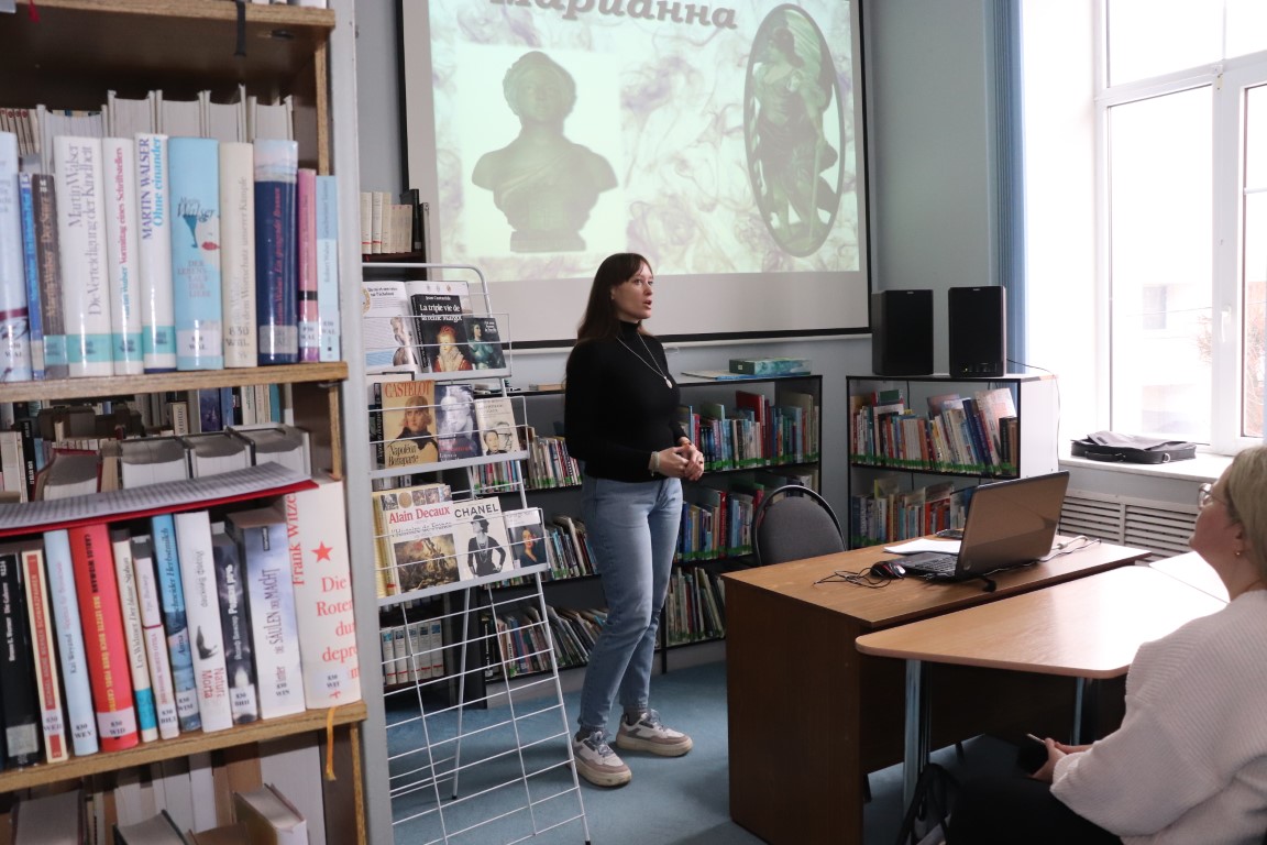 В областной библиотеке им. А.Т. Твардовского состоялась библиокарусель для студентов третьего курса филологического факультета СмолГУ. Ребята прослушали лекцию о 12 знаменитых женщинах мира, просмотрели видео с историческими выдержками, послушали песню Эдит Пиаф «Нет, я не жалею ни о чём», поучаствовали в викторине «Шанель», послушали интервью Катрин Денёв на французском языке, разгадали кроссворд «Женщины-легенды».