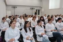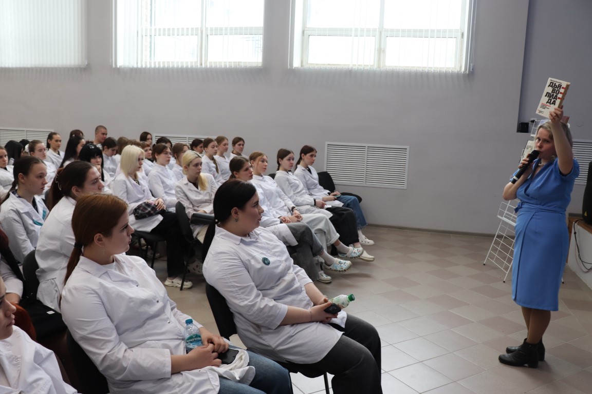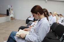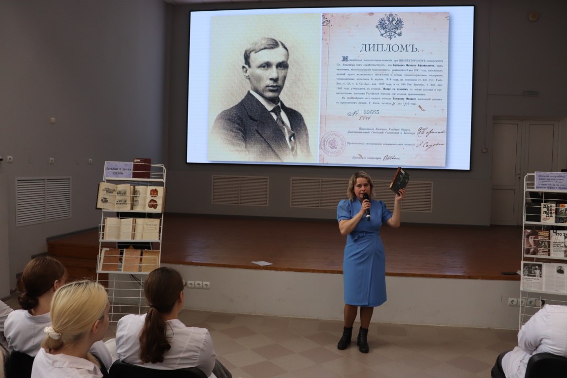 Студенты с азартом узнавали о сложных случаях из медицинской практики доктора Булгакова. Фрагменты фильма «Записки юного врача», снятого по мотивам ранних рассказов Михаила Булгакова, несомненно, усилили впечатление от услышанного. Особое внимание студентов-медиков привлекли книги из фонда библиотеки – те самые, по которым учились будущие врачи и фельдшеры в начале 20 века.