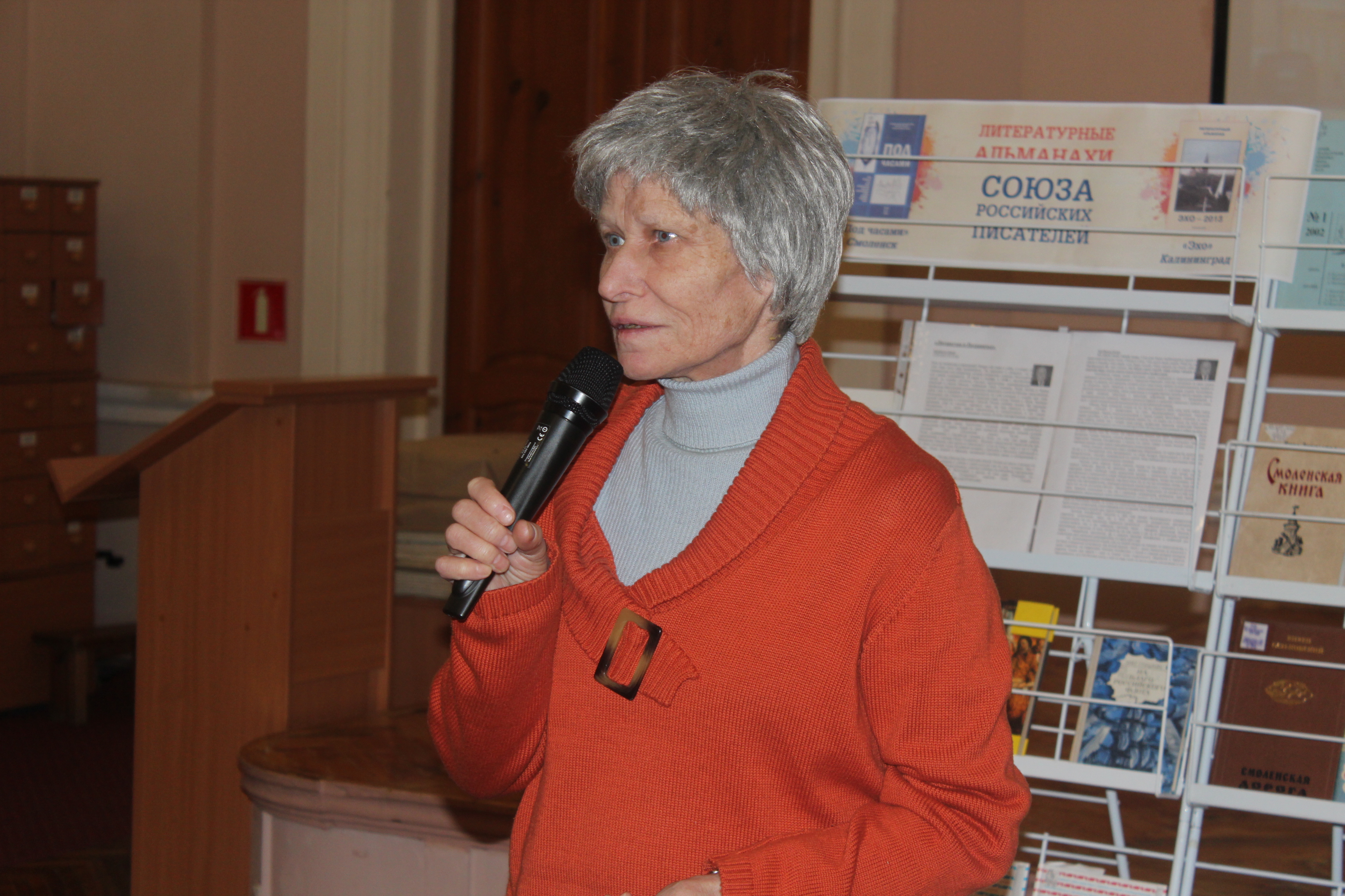 Гостей вечера приветствовала директор библиотеки О. Е. Мальцева. С Годом литературы всех присутствующих поздравила консультант отдела профессионального искусства, народного творчества и художественного образования Департамента Смоленской области по культуре и туризму Э. А. Решетникова.