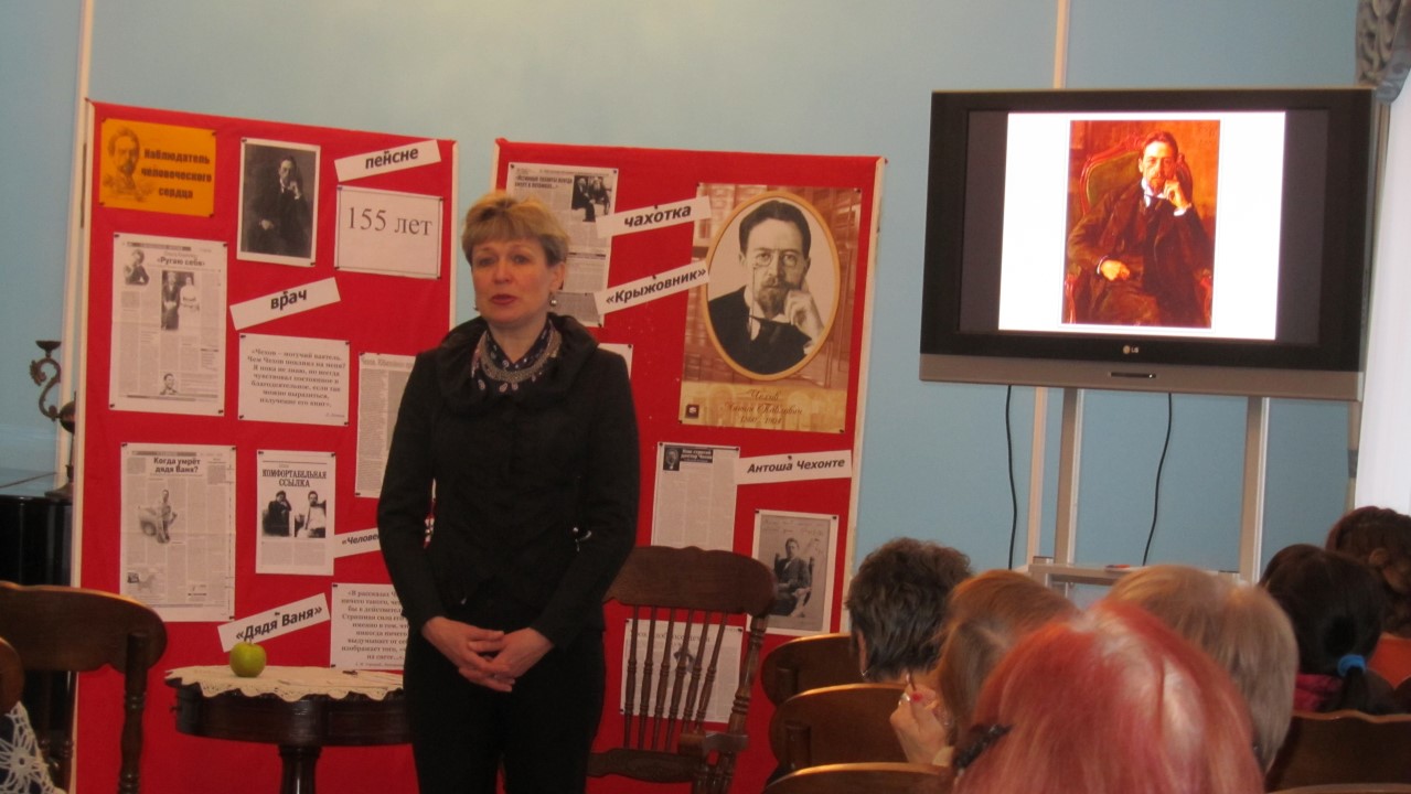 Сотрудниками отдела массовой работы в этот день был проведен литературный час «Пока душа жива – я знаю – Чехов с нами!» о жизни и творчестве писателя с использованием фрагментов фильмов, спектаклей и даже балетных постановок.