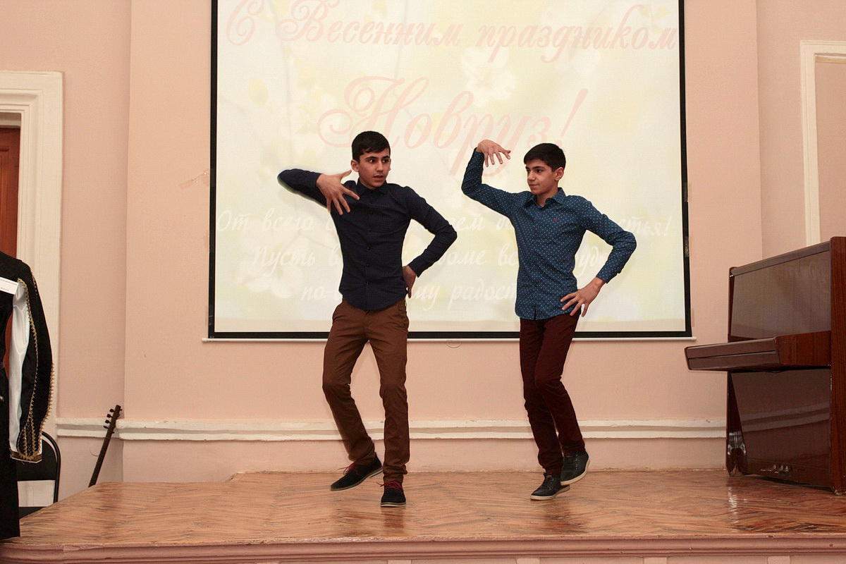 Яркими и запоминающимися были выступления представителей Азербайджанского национально-культурного центра «Хазри». Интересные факты о празднике Новруз Байрам сообщил председатель Совета Старейшин Азербайджанской диаспоры Смоленской области С. М. Сулейманов, о природных и климатических особенностях страны – председатель региональной общественной ассоциации «Национальный конгресс Смоленской области» Ф. З. Алиев, об истории страны – студент 3-го курса СГМУ Т. Муса-оглы, об архитектурных достопримечательностях – врач областной клинической больницы Э. Асданалыев, о национальной кухне и одежде – директор Казимировского дома культуры Руднянского района Л. А. Аскерова, о гостеприимстве и семейных традициях - председатель Азербайджанского молодежного объединения в Смоленской области С. Фазиль-оглы Мехтиев, о достижениях Азербайджана в разных видах спорта - спортсмен, участник многих международных соревнований Т. Талыблы. Творческие выступления членов азербайджанской диаспоры Смоленска поистине украсили мероприятие, сделали его особенно ярким и запоминающимся. Ученица третьего класса средней общеобразовательной школы № 37 Х. Лаиджева выразительно прочитала стихотворение, посвященное Азербайджану. Л. Аскерова и И. Безменова исполнили песню, а ученики средней общеобразовательной школы № 14 – народный азербайджанский танец «Лезгинка». Настоящим подарком для гостей праздника стали композиции, виртуозно исполненные на типичном музыкальном инструменте Азербайджана – саз, а также на скрипке. Мероприятие сопровождала уникальная выставка книг по истории, культуре и традициям Азербайджана, а также выставка подлинного мужского и женского национального костюма. В заключение праздника гостям была предложена дегустация национальных азербайджанских блюд, которые специально были приготовлены к празднику Новруз Байрам.