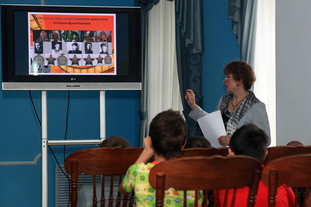 21 и 22 июня повторно состоялись медиалекции «Сказочные роли актеров - участников Великой Отечественной войны», посвященные 75-ой годовщине начала Великой Отечественной войны. Первыми познакомились с самым боевым и орденоносным детским фильмом «Приключения Буратино» маленькие воспитанники социально-реабилитационного центра «Феникс». В сам День памяти и скорби слушателями стали учащиеся гимназии им. Пржевальского. Ребятам рассказали, что в съемках этого фильма участвовали сразу пять фронтовиков, награжденных боевыми орденами и медалями еще во время Великой Отечественной. Они узнали о фронтовой судьбе актеров, их участии в боевых действия и послевоенных работах в кино. Активно прошла викторина по содержанию фильма. В конце мероприятия ребята подпевали актерам во время исполнения финальной песни из фильма «Бу-ра-ти-но».