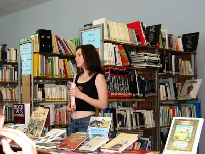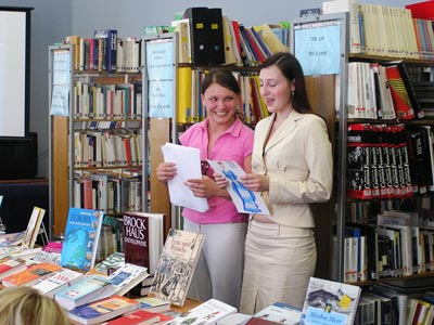 В немецко-французском зале прошла ставшая уже традиционной презентация коллекции новых поступлений, которую посетили преподаватели и студенты ВУЗов институтов, учителя и учащиеся школ и гимназий г. Смоленска. Группа студентов и преподавателей Смоленского государственного университета факультета иностранных языков кафедры немецкого языка подготовили краткие сообщения о некоторых новых наиболее интересных издания из фонда НЙЧЗ. Были продемонстрированы новые CD-ROM, DVD и видеокассеты, даны рекомендации по их использованию в работе и учебе.