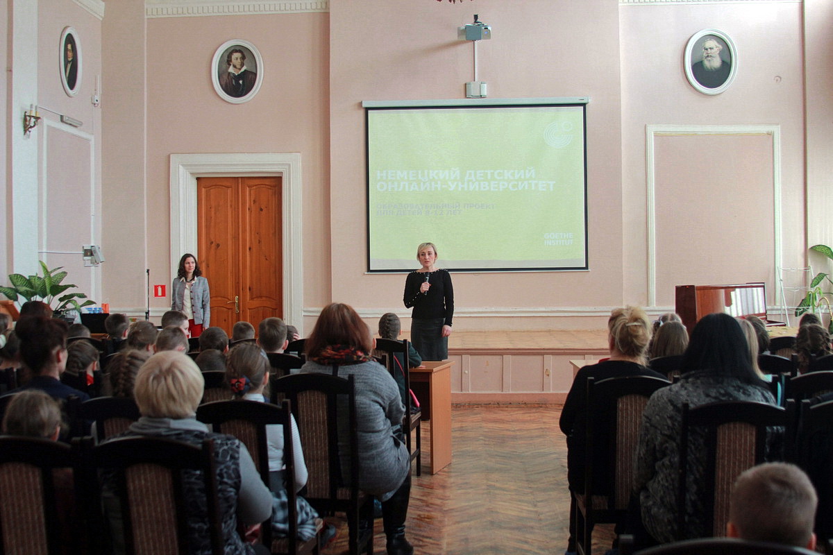 21 февраля в библиотеке состоялась презентация Немецкого детского онлайн-университета. Это инновационный проект, который развивает креативное мышление детей, опираясь на их врожденный интерес ко всему неизвестному, знакомит их с немецким языком, даёт возможность детям в игровой форме исследовать различные области знаний, рассматривает вопросы, которые интересны детям и важны для их повседневной жизни. Главным элементом Немецкого детского онлайн-университета является общедоступная и бесплатная онлайн-платформа, разработанная Немецким культурным центром им. Гёте. Университет состоит из 3 факультетов «Человек. Природа. Техника», предлагает 45 видеолекций и более 360 интерактивных заданий.
