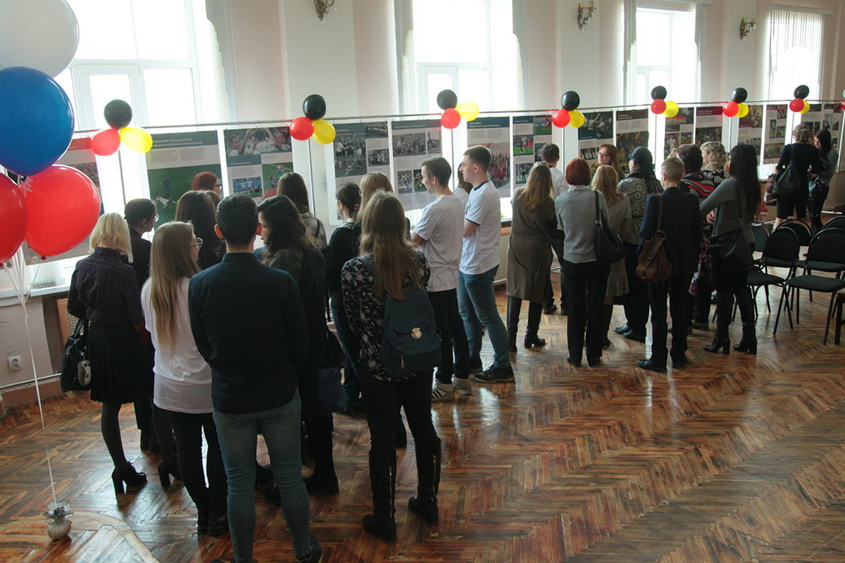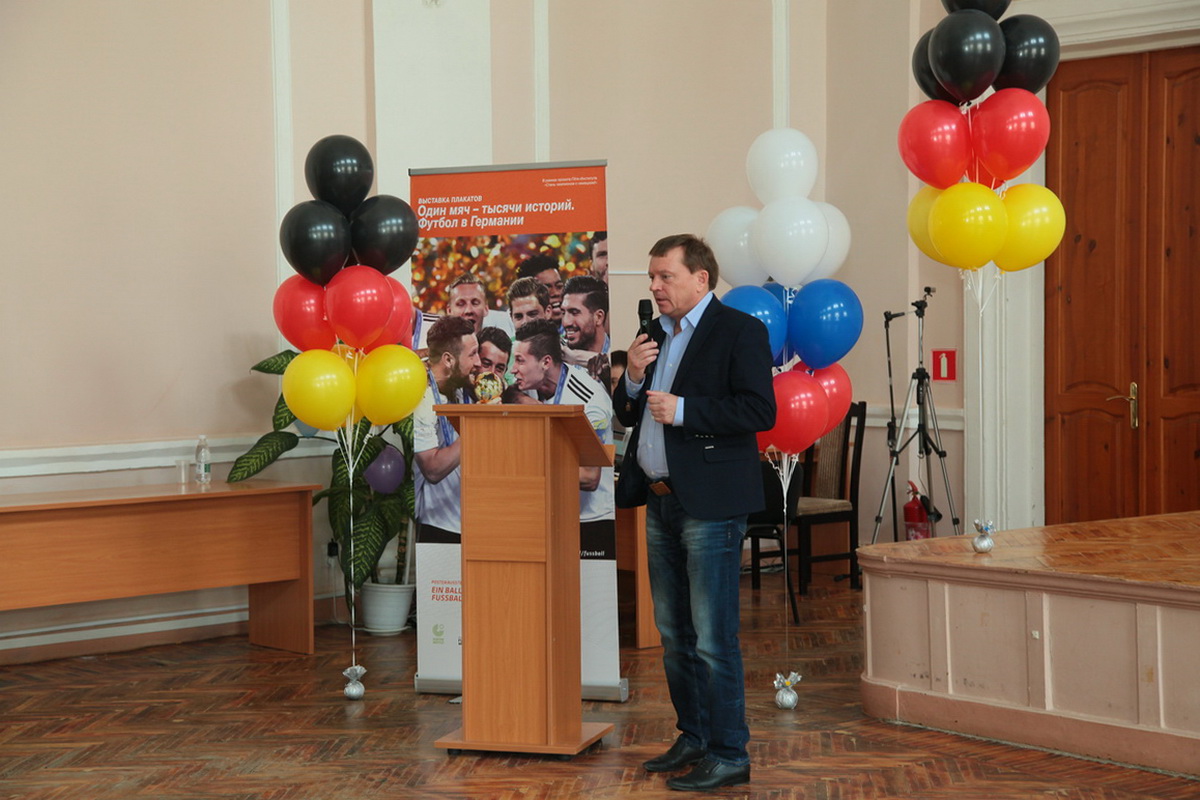 5 апреля состоялась презентация выставки плакатов «Один мяч – тысячи историй. Футбол в Германии», организованной в преддверии чемпионата мира по футболу 2018 г. в рамках проекта Гёте-Института «Стань чемпионом с немецким!», в котором немецкий язык и футбол позиционируется как два фактора успеха.