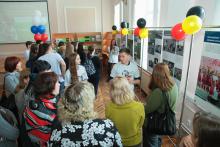 Координатор проекта, куратор немецко-французского читального зала И. В. Новикова в своем выступлении пояснила, что основные целевые группы проекта – школьники, изучающие немецкий язык. Для учителей немецкого языка подготовлен большой блок дидактических материалов, с которыми они познакомились на прошедшем в рамках презентации выставки семинаре «Игра в стеночку»: дидактические проекции футбольного дискурса», проведенном экспертом проекта, начальником международного отдела СмолГУ Р. В. Белютиным.