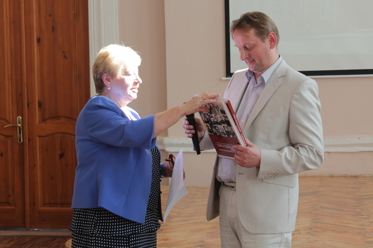 Представитель Департамента Смоленской области по культуре и туризму Н. В. Деверилина поздравила авторский коллектив с творческой удачей. Все библиотеки области получат прекрасное издание по краеведению.