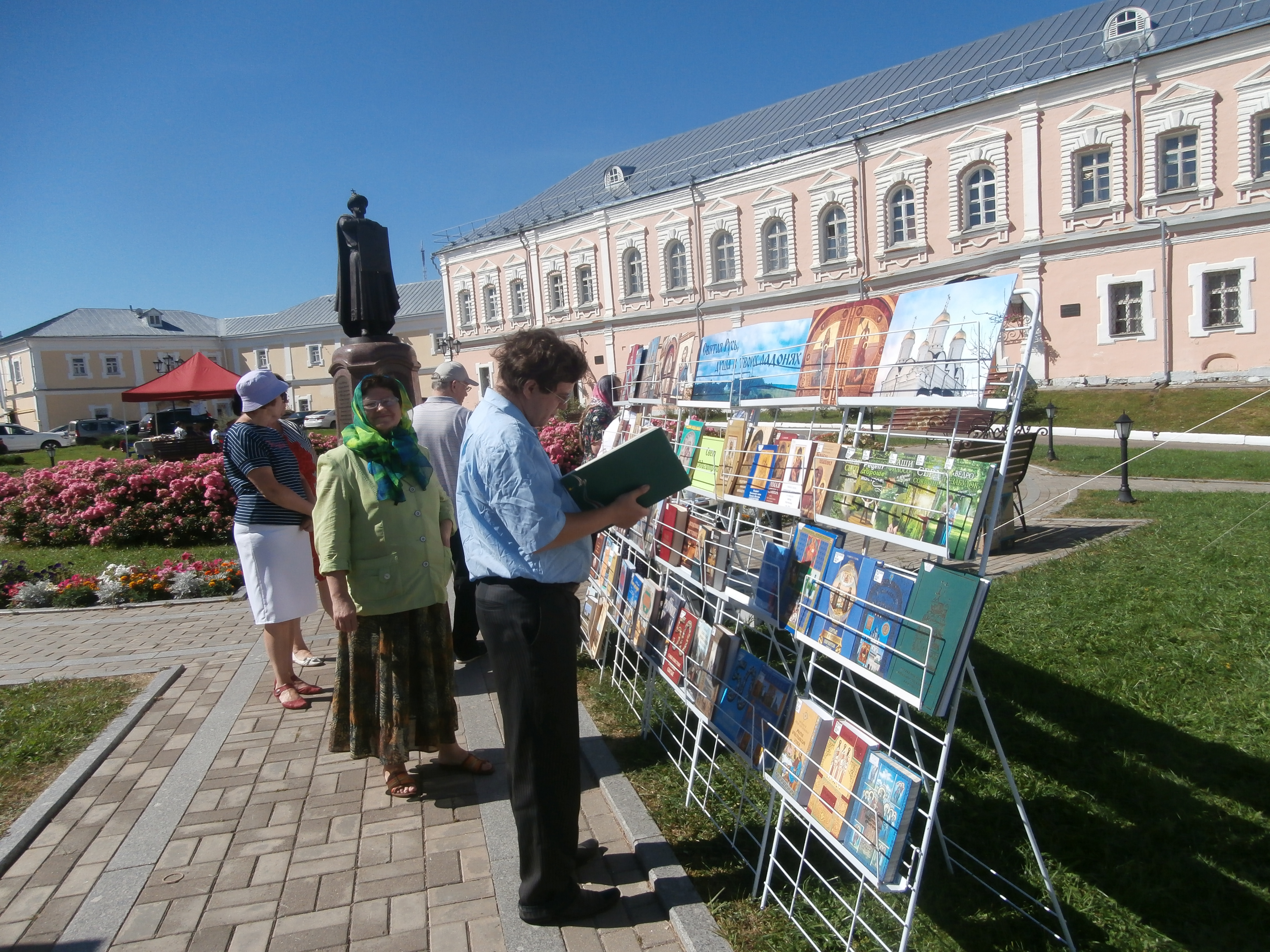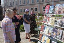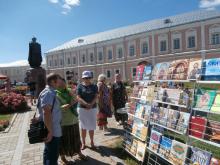 На площадке Соборного двора экспонировались книжные выставки «Святая Русь, душа в твоих ладонях» и «Свет Одигитрии». Сотрудники библиотеки знакомили собравшихся с изданиями, в которых рассказывается о принятии православия нашими далекими предками, о житии крестителя Руси – святого равноапостольного князя Владимира, о святых земли русской, с краеведческими изданиями о Смоленской иконе Божией Матери «Одигитрия». Свою продукцию представил редакционно-издательский отдел Смоленской областной универсальной научной библиотеки им. А. Т. Твардовского.