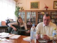 В заключение Сергей Федорович Жарков подарил библиотеке и членам клуба CD-диски со своими стихами «Мне Бог шептал на ухо…».