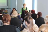 Доцент кафедры библиотечно-информационной деятельности и музеологии Смоленского государственного института искусств Галина Владимировна Максименкова провела занятие по теме «Профессиональное развитие коллектива: формы и методы обучения». Она познакомила участников семинара с приоритетными направлениями профессионального совершенствования библиотечных кадров, обозначив, что наша профессия, как никакая другая, требует постоянного обновления знаний. Для повышения квалификации существуют различные формы и методы, есть традиционные, которые библиотеки используют постоянно, но появились и новые. Идя в ногу с современными технологиями, необходимо использовать все формы и методы обучения. Приоритеты должны быть отданы активным формам, способствующим развитию творческой активности слушателей.