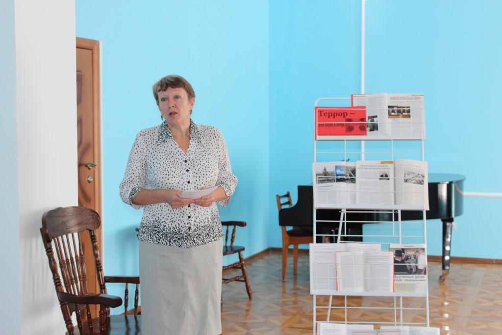 Библиотеки России активно включились в процесс противодействия этому социально-политическому явлению. 3 сентября, когда в России отмечается День солидарности в борьбе с терроризмом, в литературной гостиной Смоленской областной универсальной библиотеки им. А. Т. Твардовского вспоминали трагические события в Беслане, когда 1 сентября 2004 года боевики захватили одну из городских школ. В результате теракта погибло более 300 человек, среди них более 150 детей. В своем выступлении на Дне информации «Этот многоликий терроризм» заведующая отделом общего обслуживания Новикова И. В. отметила, что в настоящее время во всем мире активизируется антитеррористическое движение, повышается уровень знаний, чтобы решительно противостоять террору и не допустить ни второго Беслана, ни других подобных трагедий.