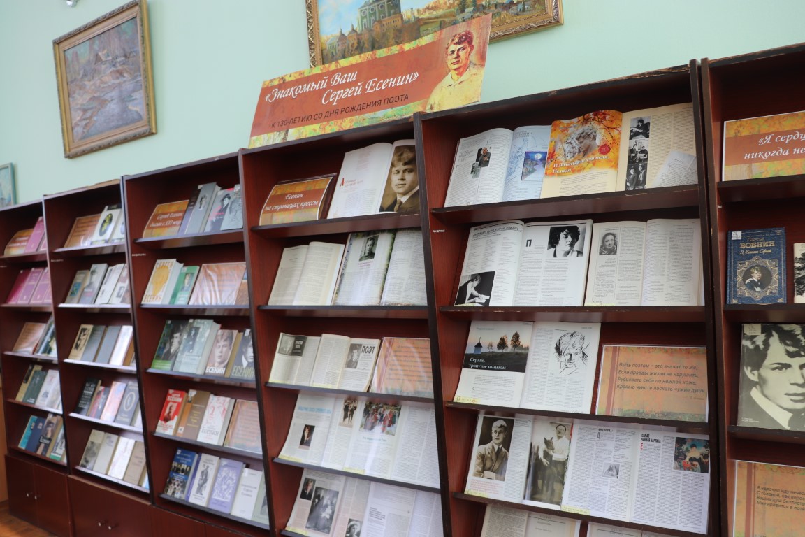 «Знакомый Ваш Сергей Есенин» – выставка-просмотр с таким названием экспонируется в зале № 35 областной библиотеки имени А. Т. Твардовского с 1 октября по 28 декабря 2025 года.