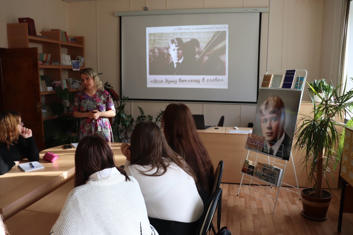 Студентам Смоленского педагогического колледжа сотрудниками областной библиотеки имени А. Т. Твардовского был представлен литературно-музыкальный этюд «Всю душу выплещу в слова». Перед ребятами раскрутилась карусель жизни поэта: Константиново, Москву, Петроград, Америку они увидели сквозь призму есенинских строк…
