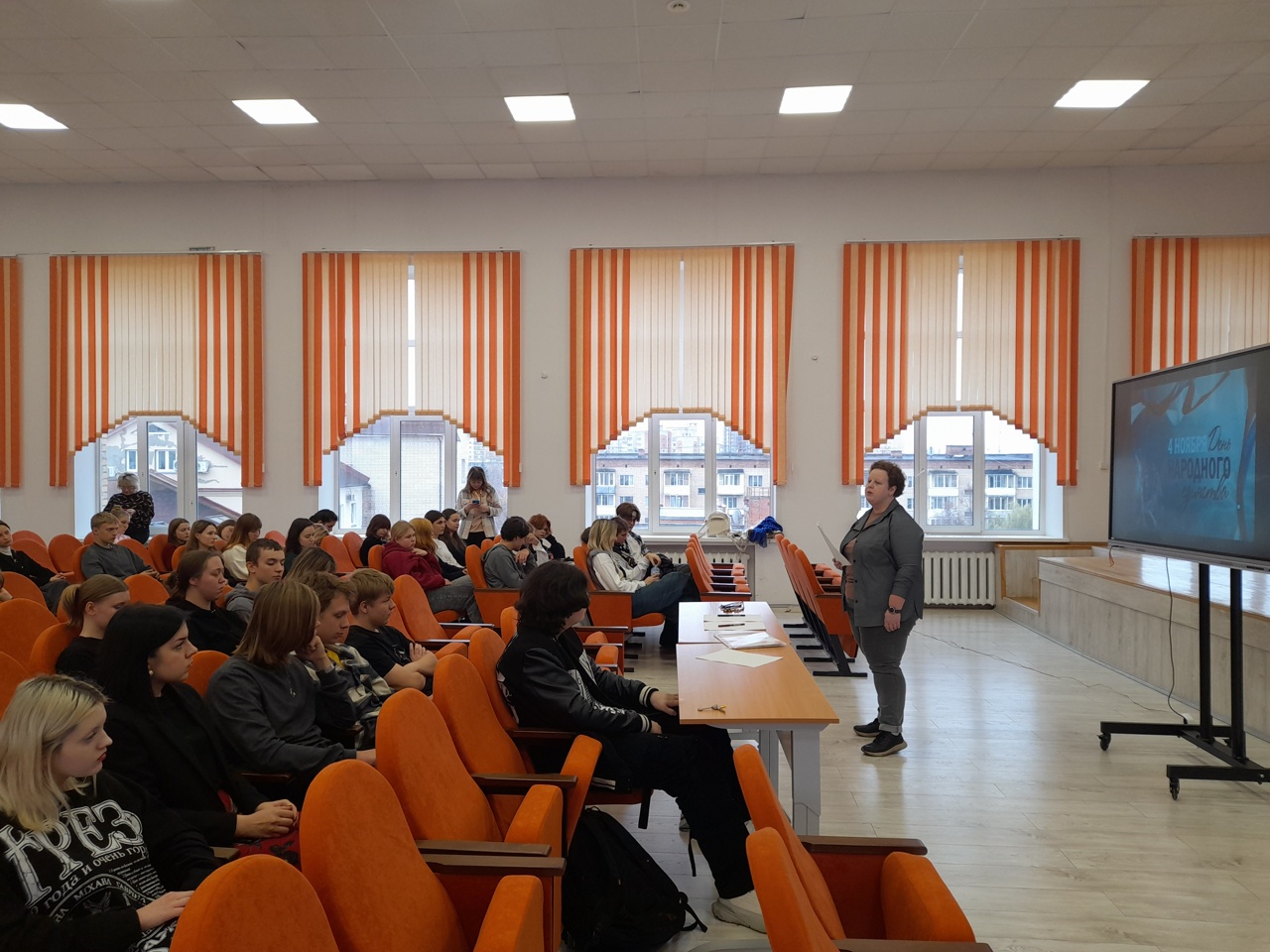 Сотрудники нашей библиотеки провели для студентов музыкального училища и специалистов регионального отделения Социального фонда России интерактивные программы, посвящённые предстоящему Дню народного единства.