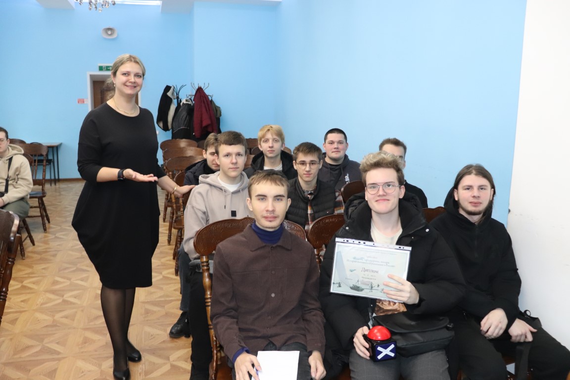 Затем студенты приняли участие в познавательной игре «История военного образования в России». В ходе мероприятия участники ответили на ряд вопросов по истории военного образования в России, а также на вопросы из области физики, математики, литературы, музыки и др. По итогам игры команда-победителей получила памятный диплом.