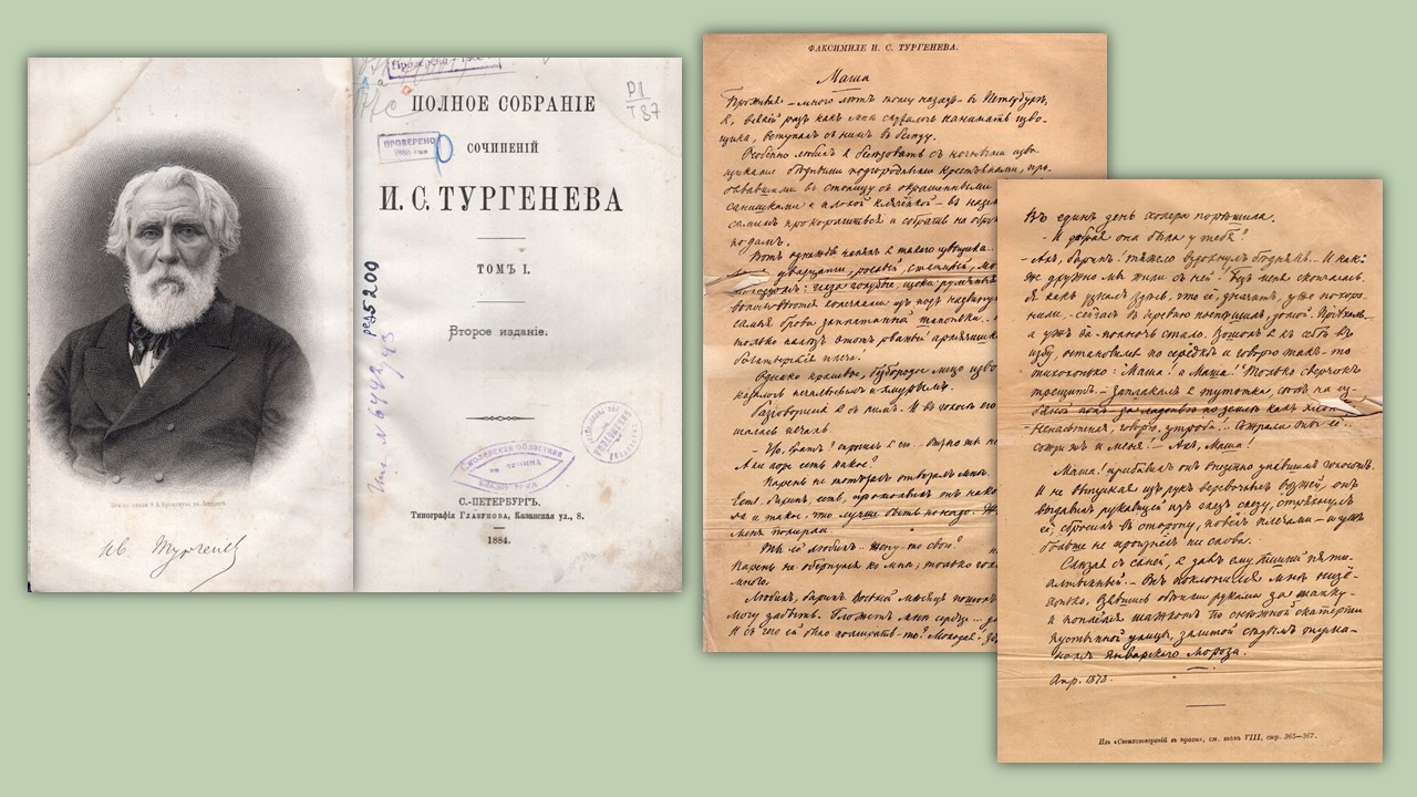 Приглашаем Вас в областную библиотеку им. А. Т. Твардовского, где вы сможете увидеть редкие издания И. С. Тургенева XVIII – начала XX веков! В фонде библиотеки представлены как собрания сочинений, так и отдельные произведения писателя. Ждем вас в кабинете № 42 (отдел редких книг).