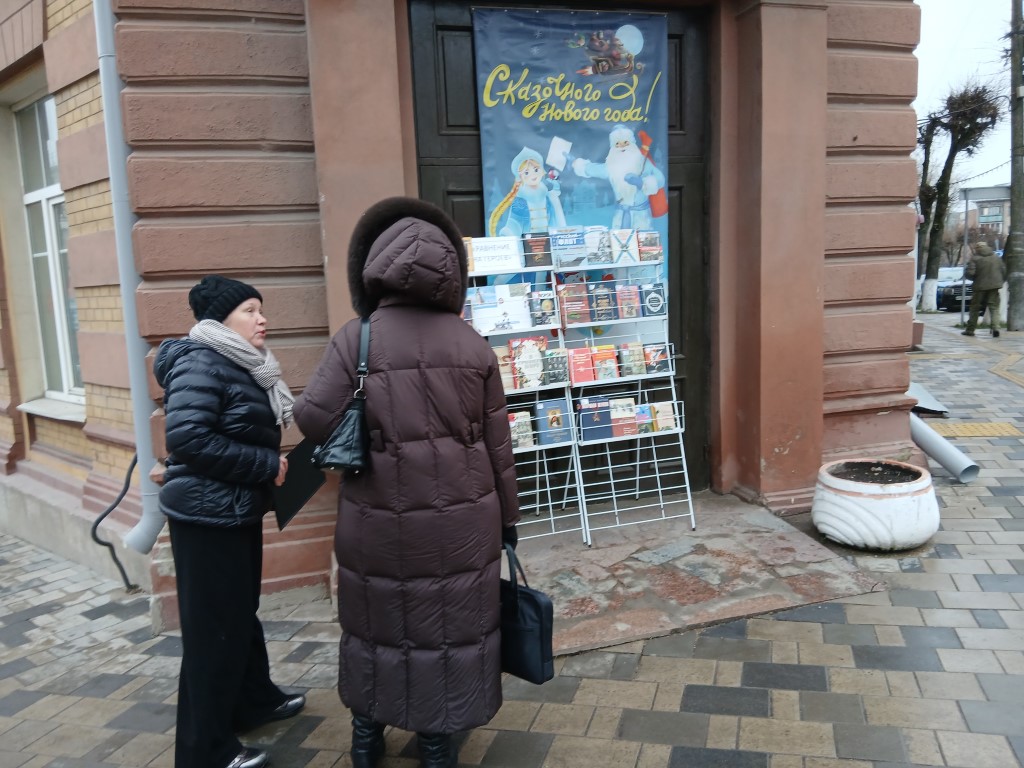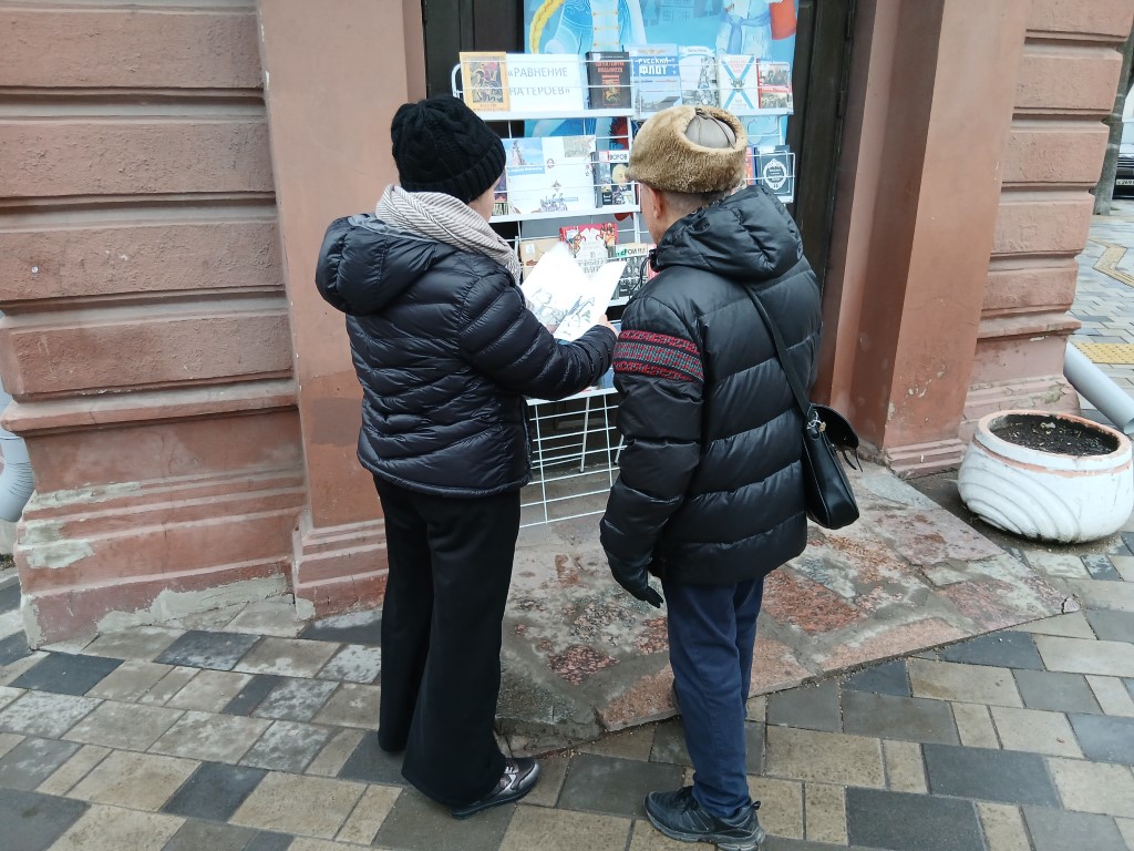 В День Героев Отечества сотрудники нашей библиотеки представили на открытой площадке книжную выставку «Равнение на Героев» и провели викторину «Героями не рождаются».