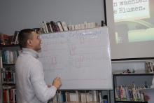 Сотрудники нашей библиотеки провели для студентов немецкого отделения филологического факультета СмолГУ цикл научно-технических досье и познакомили молодежь с увлекательной историей создания привычных нам сегодня вещей. Телевизор, компьютер, автомобиль, велосипед, интернет и мобильный телефон стали неотъемлемой частью нашей повседневной жизни. Но многие даже не задумываются, что путь их создания был тернист и не прост.